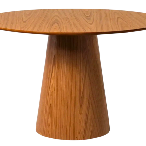 Mesa de Jantar zf1 em Amêndoa, base de madeira maciça envernizada e tampo Ø110 em MDF laqueado ou laminado, destacando-se pela aplicação de vidro branco. Design moderno e versatilidade para diversos ambientes, tornando sua casa mais bonita. Perfeita para sala de jantar, cozinha, áreas de festas ou churrasqueira. Combinação de elegância, durabilidade e funcionalidade.